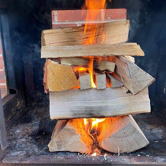 Start with a good solid base. Build your fire upwards, with airflow in mind. Cross-hatching the wood and kindling works really well. Remember airflow, airflow, airflow between the timbers. A reduction in airflow will create smoke.