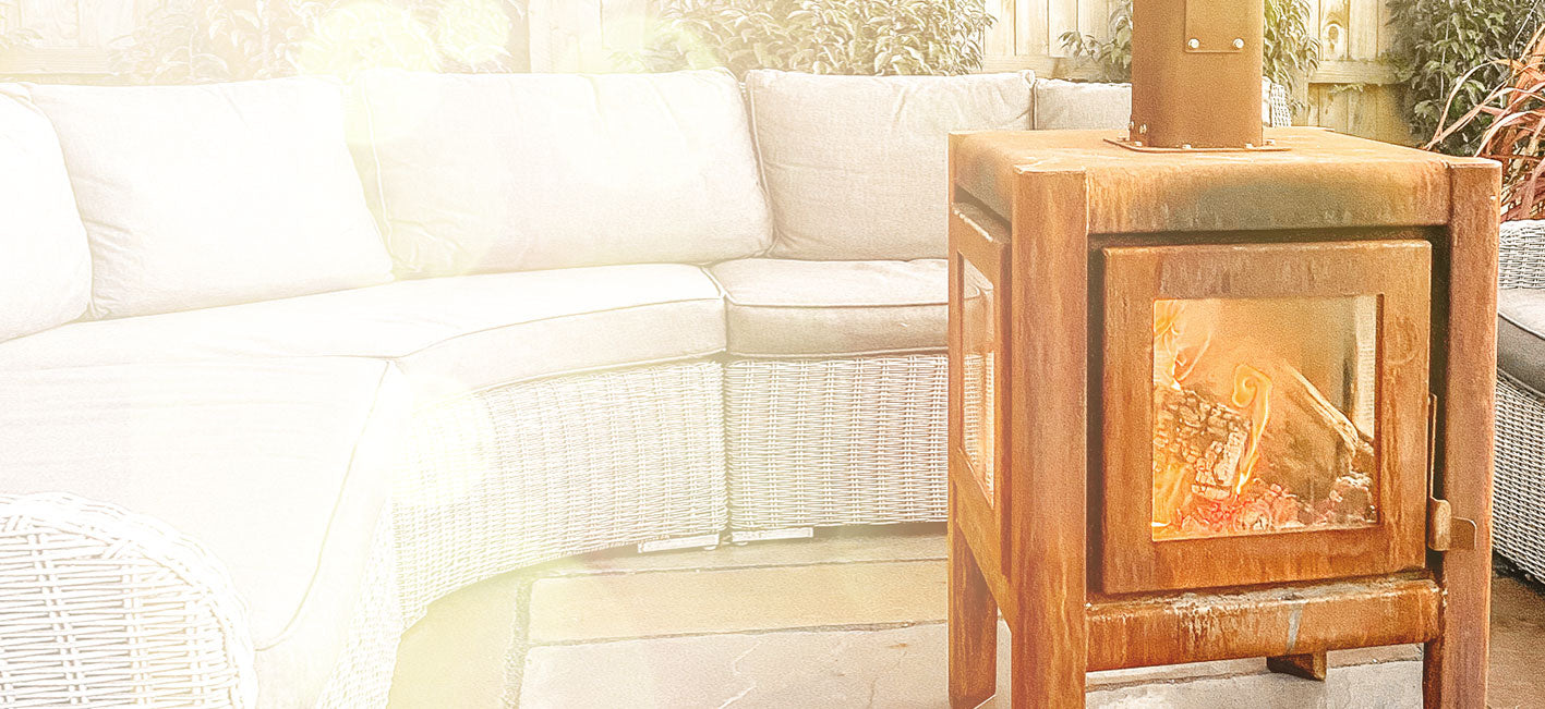 Our wood-burning outdoor fireplace has beautifully curved edges, and a naturally aged patina to give a rustic and authentic appearance.