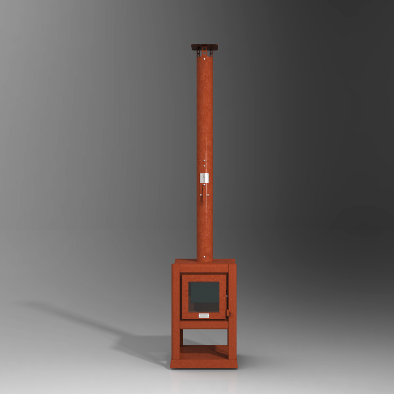 - The log burner now features a round, longer, flue.